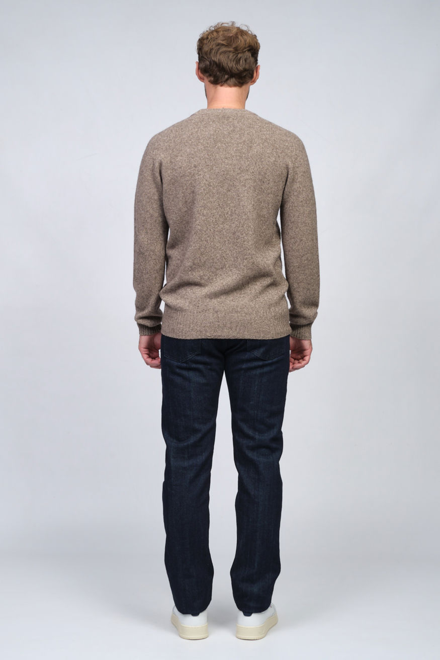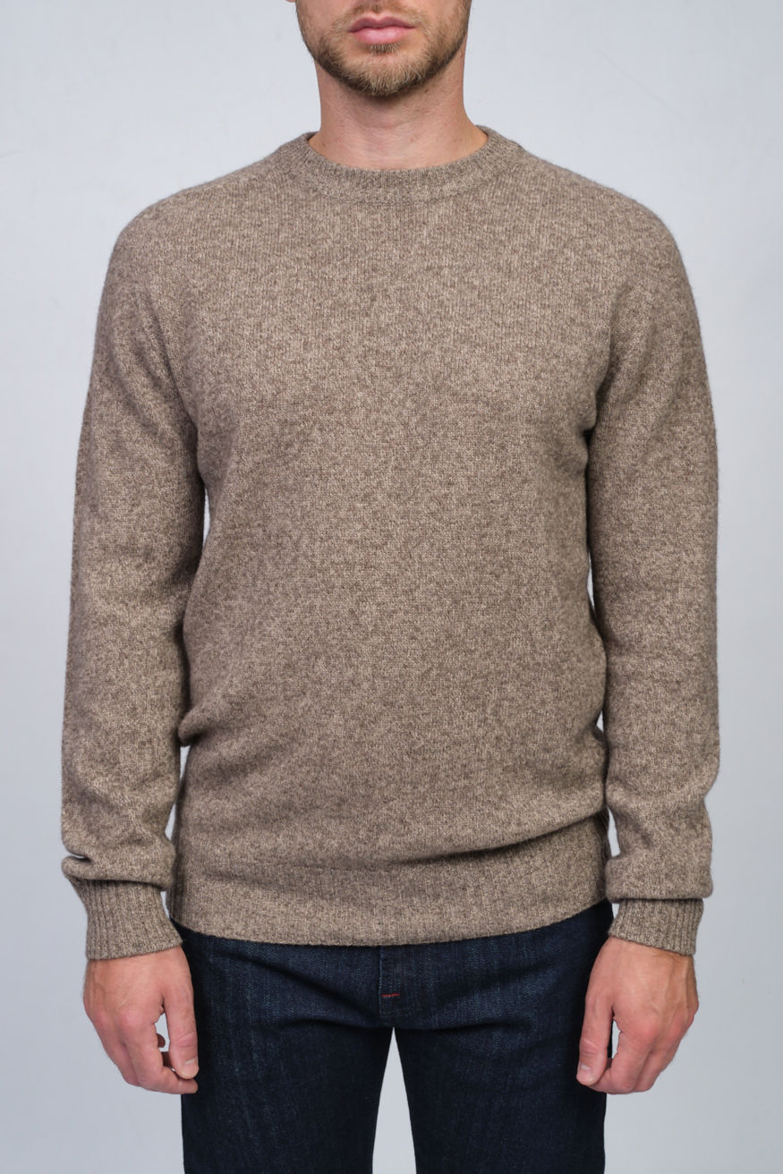 Джемпер свободного кроя из смеси шерсти яка и кашемира. Круглый вырез, манжеты и основание в рубчик.