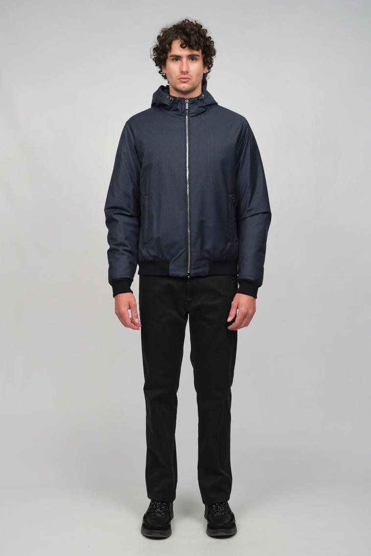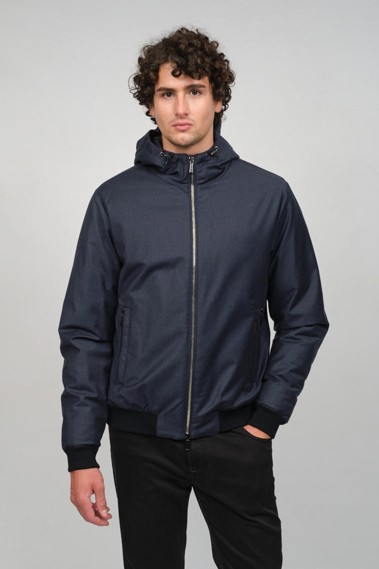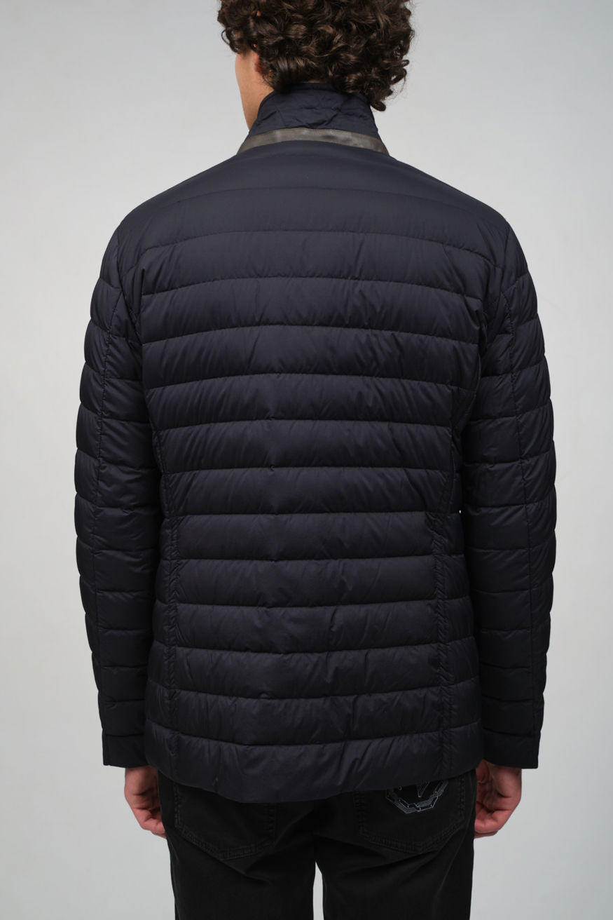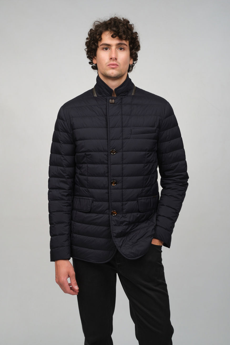 Синяя стеганая куртка MOORER пиджачного кроя сочетает влагостойкую ткань с натуральным пуховым наполнителем, обеспечивающим комфорт при температуре от 0 до 15⁰С благодаря равномерному распределению утеплителя.