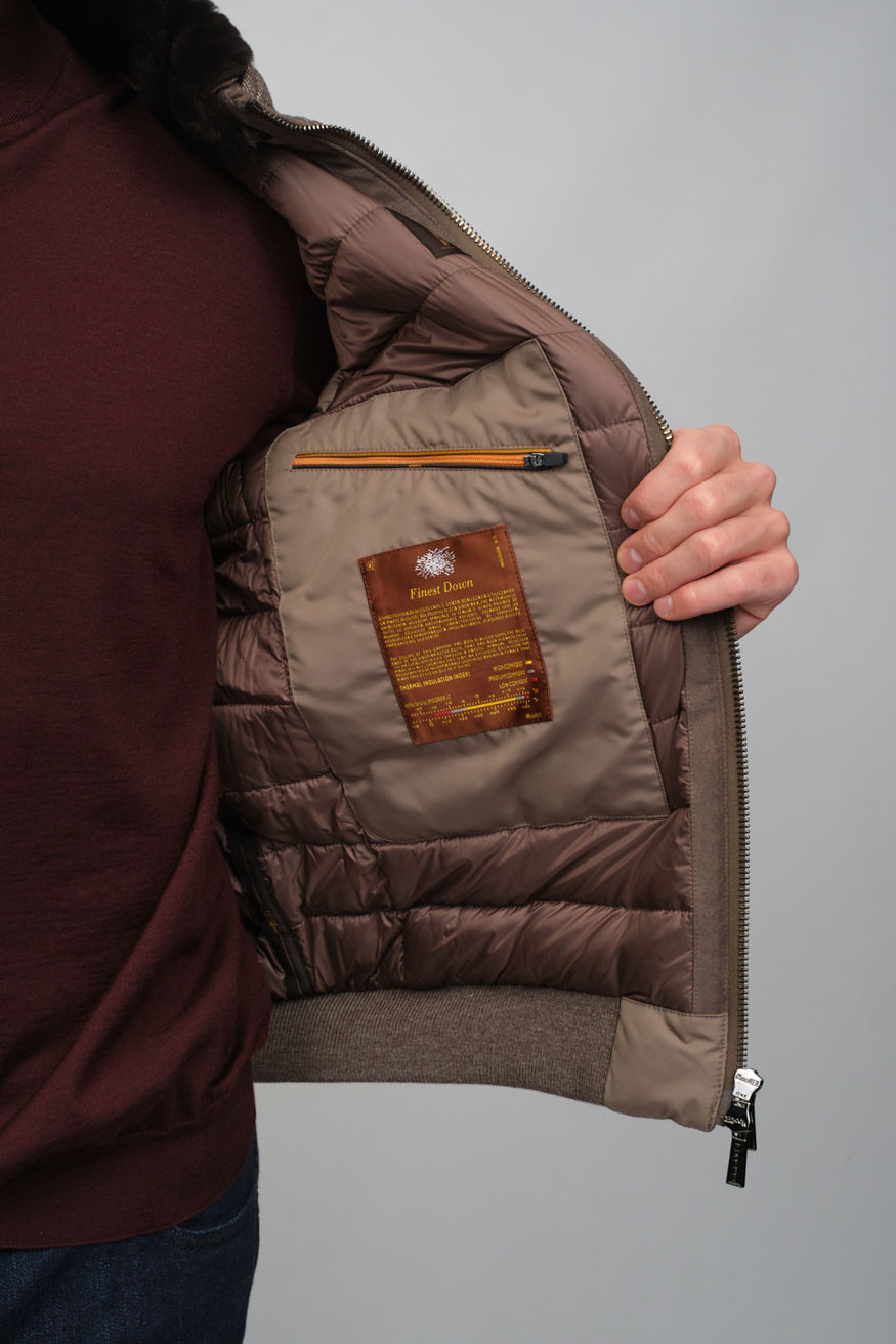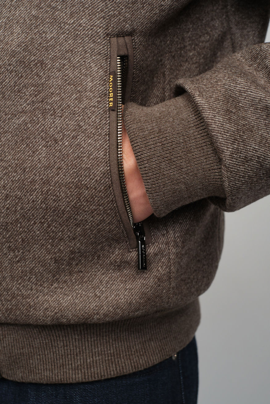 Бомбер MOORER. Модель коричневого оттенка, выполненная из роскошной смеси шерсти и кашемира. Дополнен съемным меховым воротником, он создает безупреный образ для прохладного сезона. Удобство обеспечивают эластичные манжеты, пояс по низу и практичные карманы на молнии.