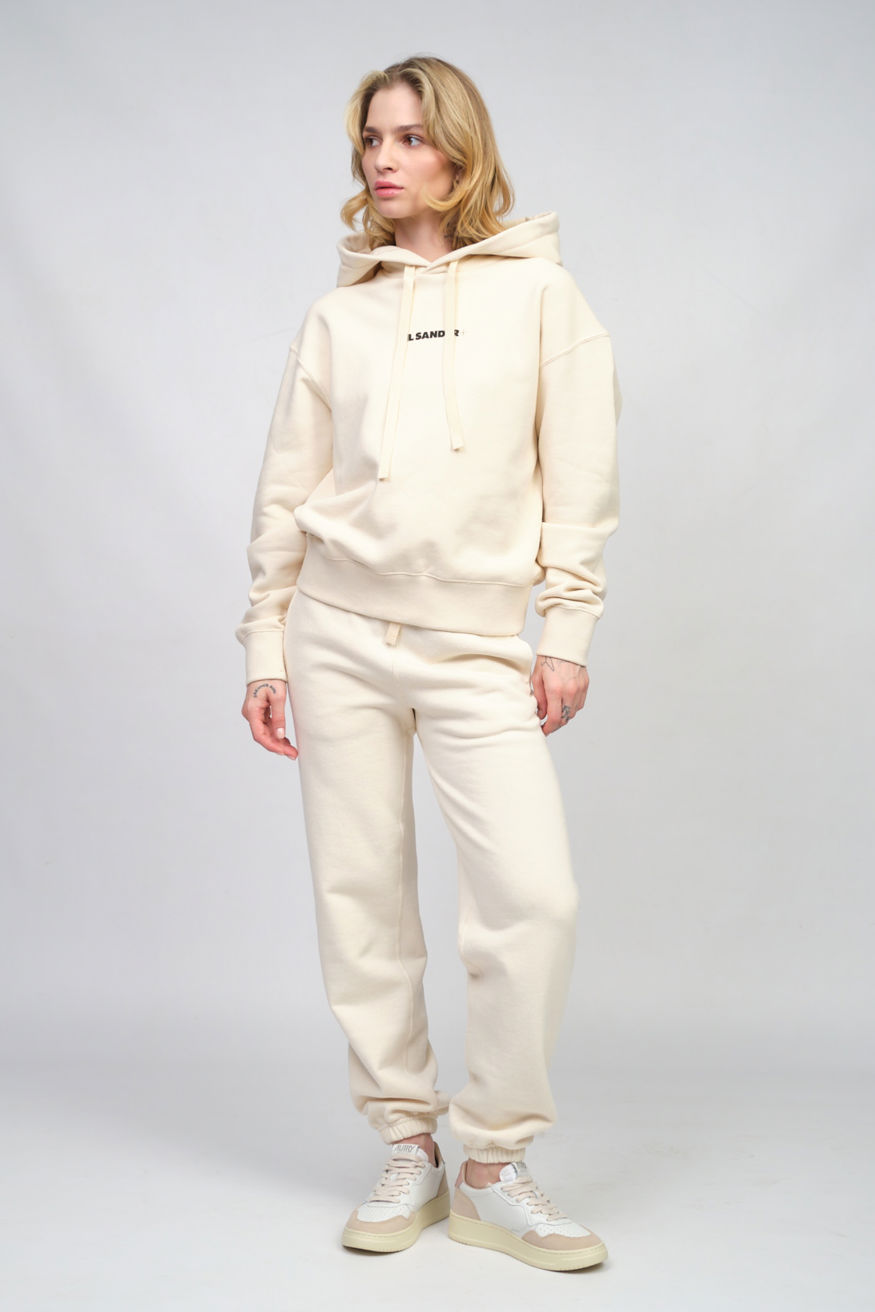 Спортивные брюки из хлопка от Jil Sander. Модель на кулиске, с эластичными манжетами. Худи из хлопка с логотипом от бренда Jil Sander.