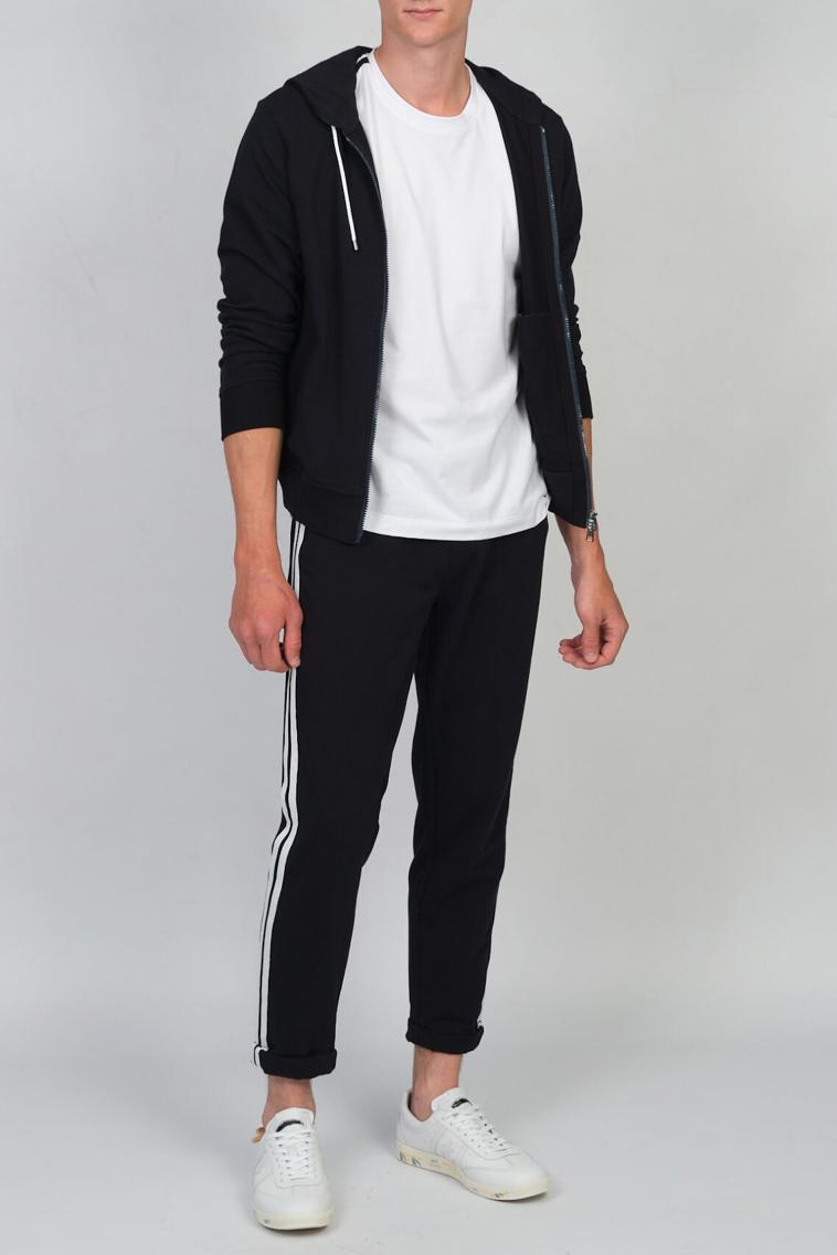 Черный анорак с воротником-стойкой сшили из плотного хлопкового трикотажа, который удерживает тепло. Изделие украсили спереди небольшим логотипом марки в тон, а сзади разместили фирменный иероглиф и брендированный шнурок.