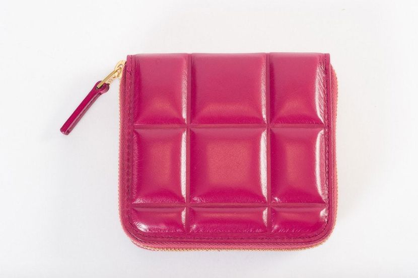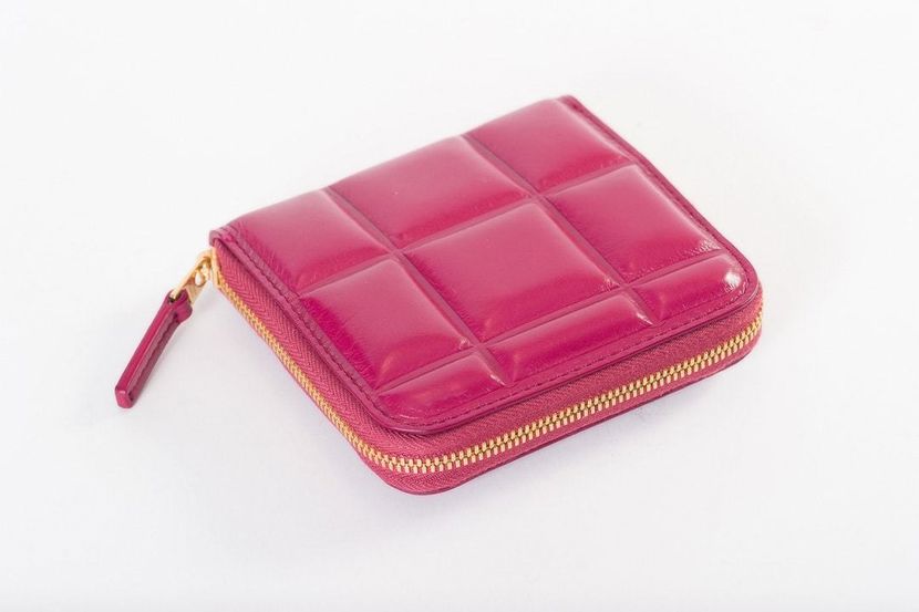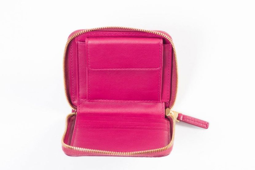 Портмоне яркого розоваого цвета. Фактурное тиснение, которым украшена мягкая, приятная на ощупь мелкозернистая кожа. Внутри предусмотрены отделение для купюр, карман для мелочи и четыре слота для кредитных карт.