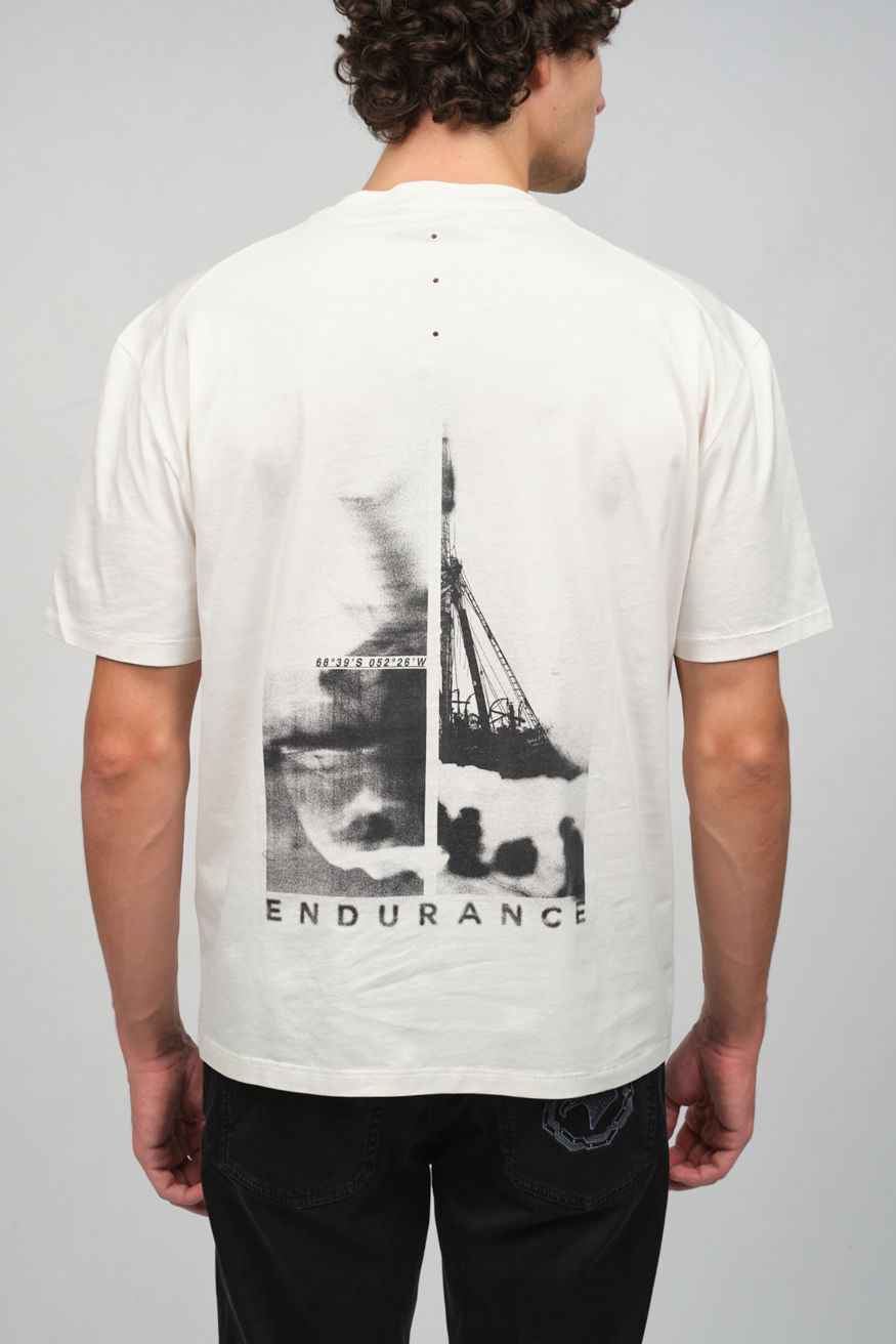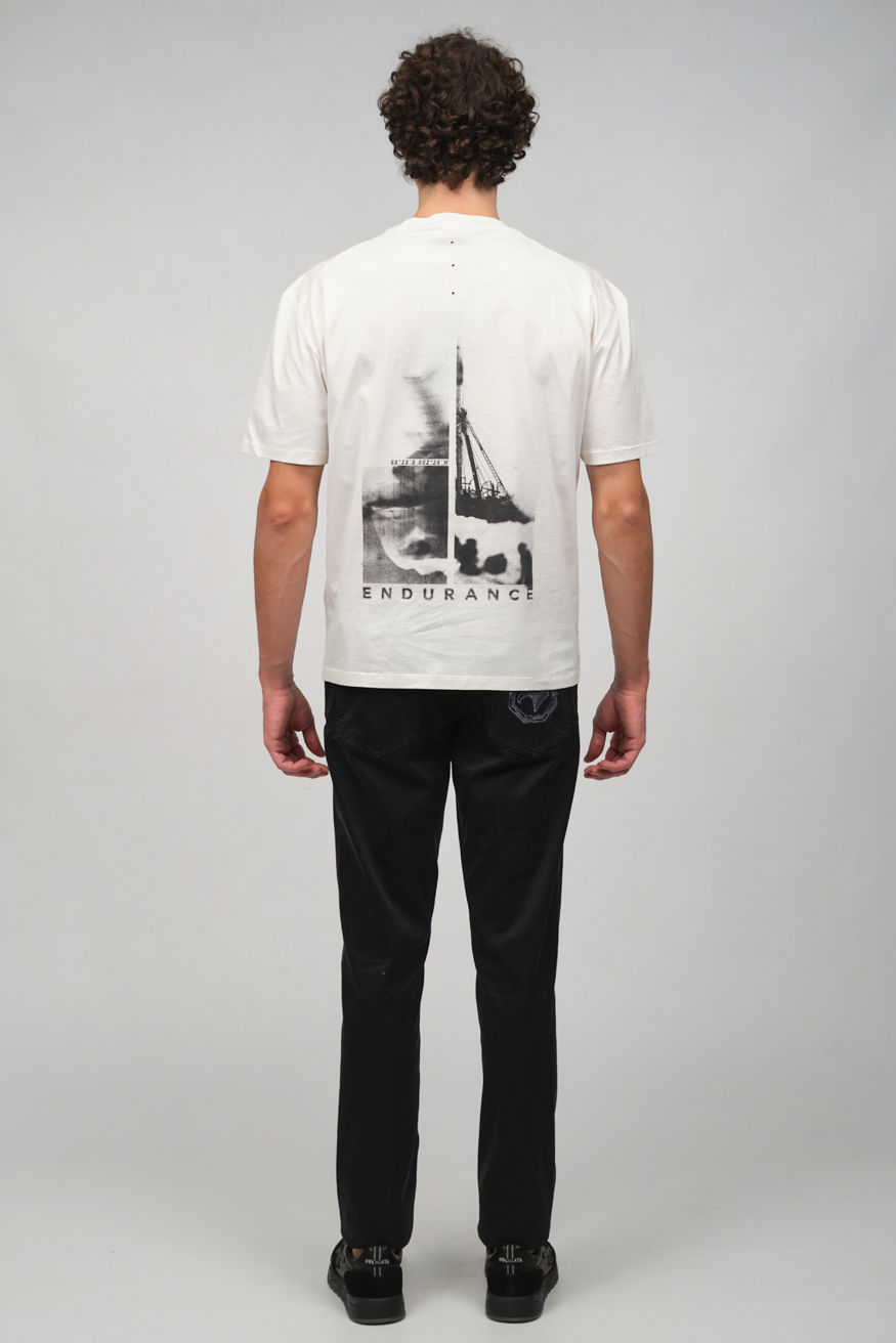 Футболка прямого кроя из мягкого хлопкового джерси. Модель украшена эффектом состаренного логотипа на груди, который перекликается с крупным принтом на спине.