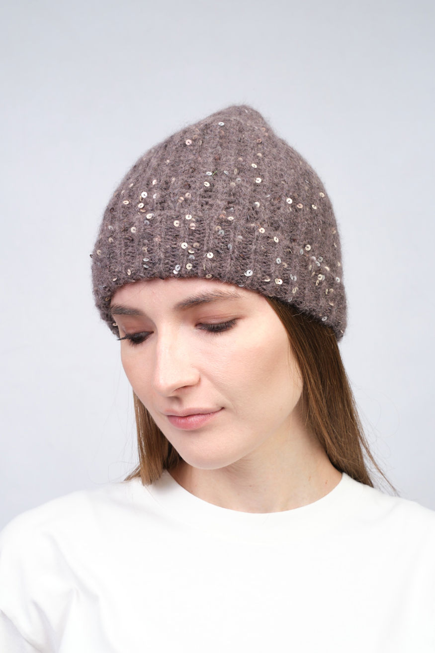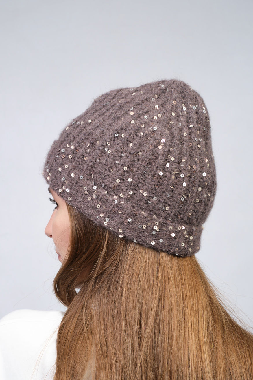 Шапка-бини от PANICALE украшена пайетками и выполнена из теплой вязаной ткани с эластичной манжетой, которая комфортно фиксирует ее на голове, не натирая кожу.