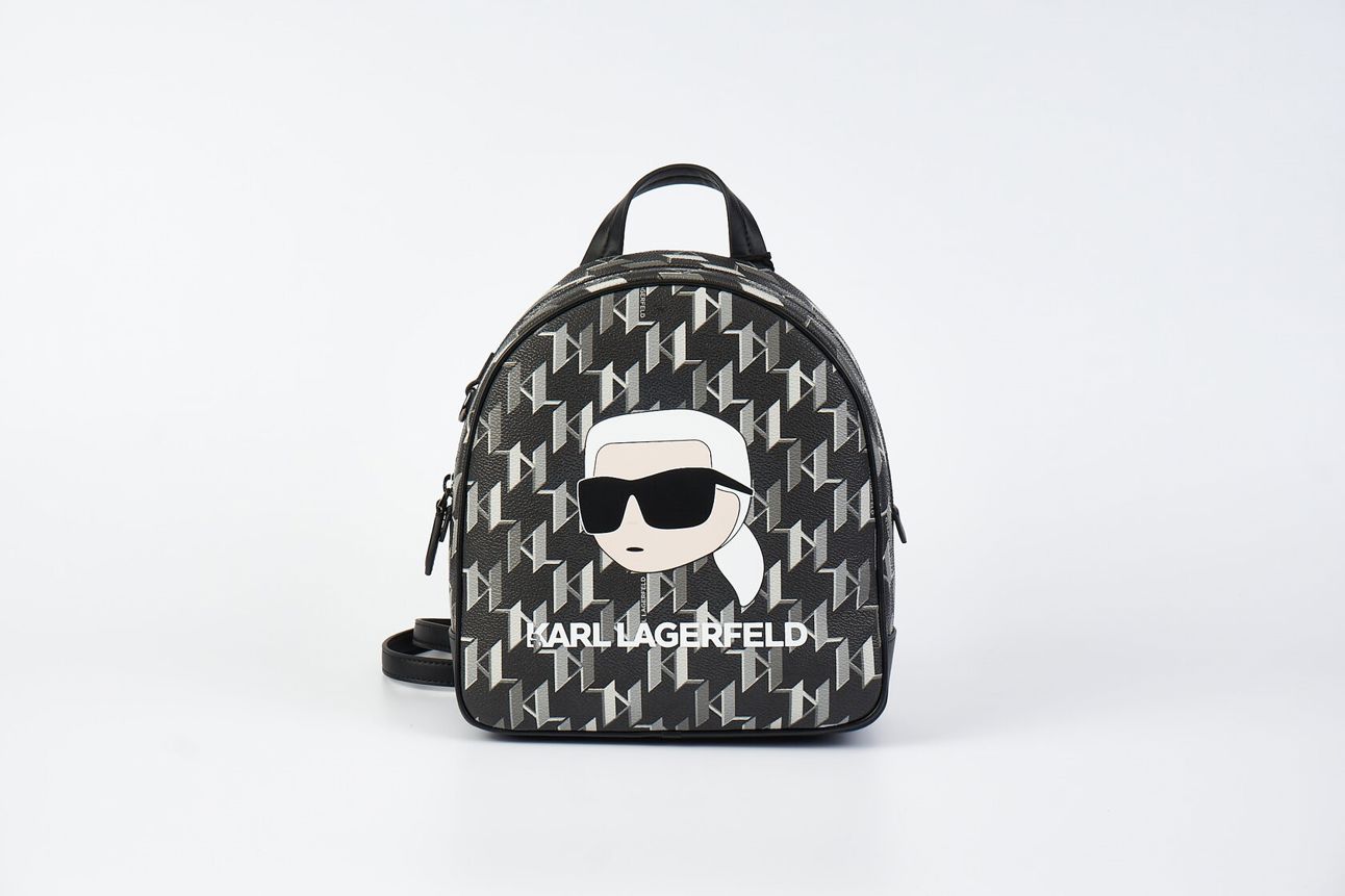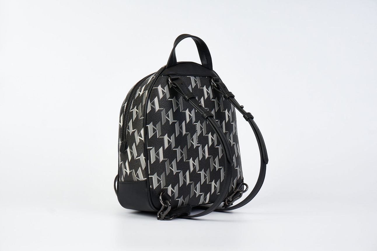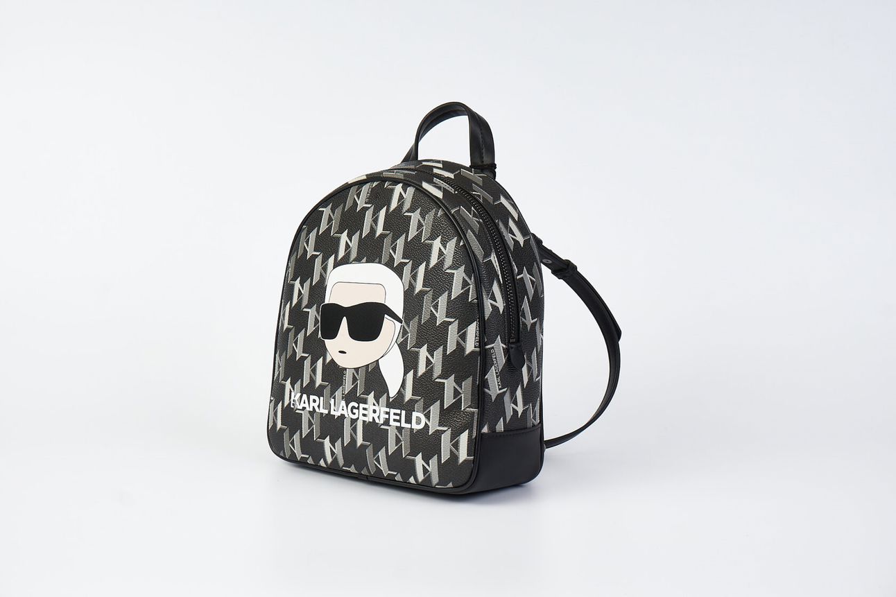 Черный рюкзак из текстурированной искусственной кожи с принтом в виде паттерна логотипа от KARL LAGERFELD.