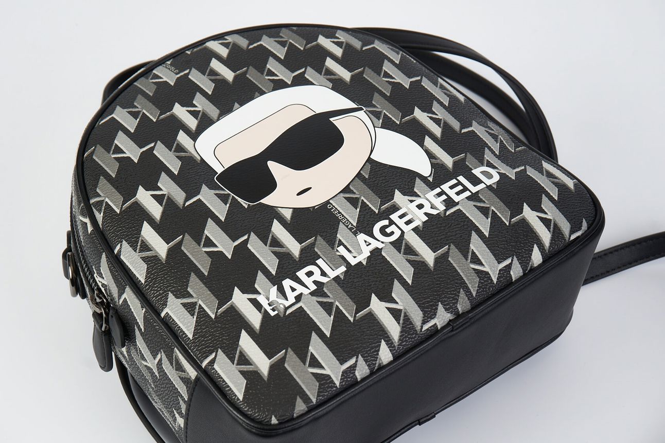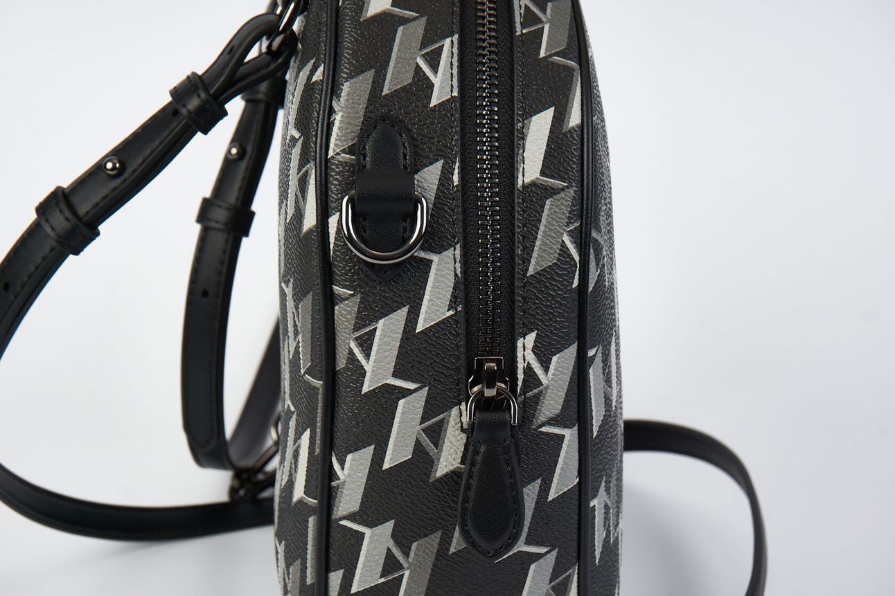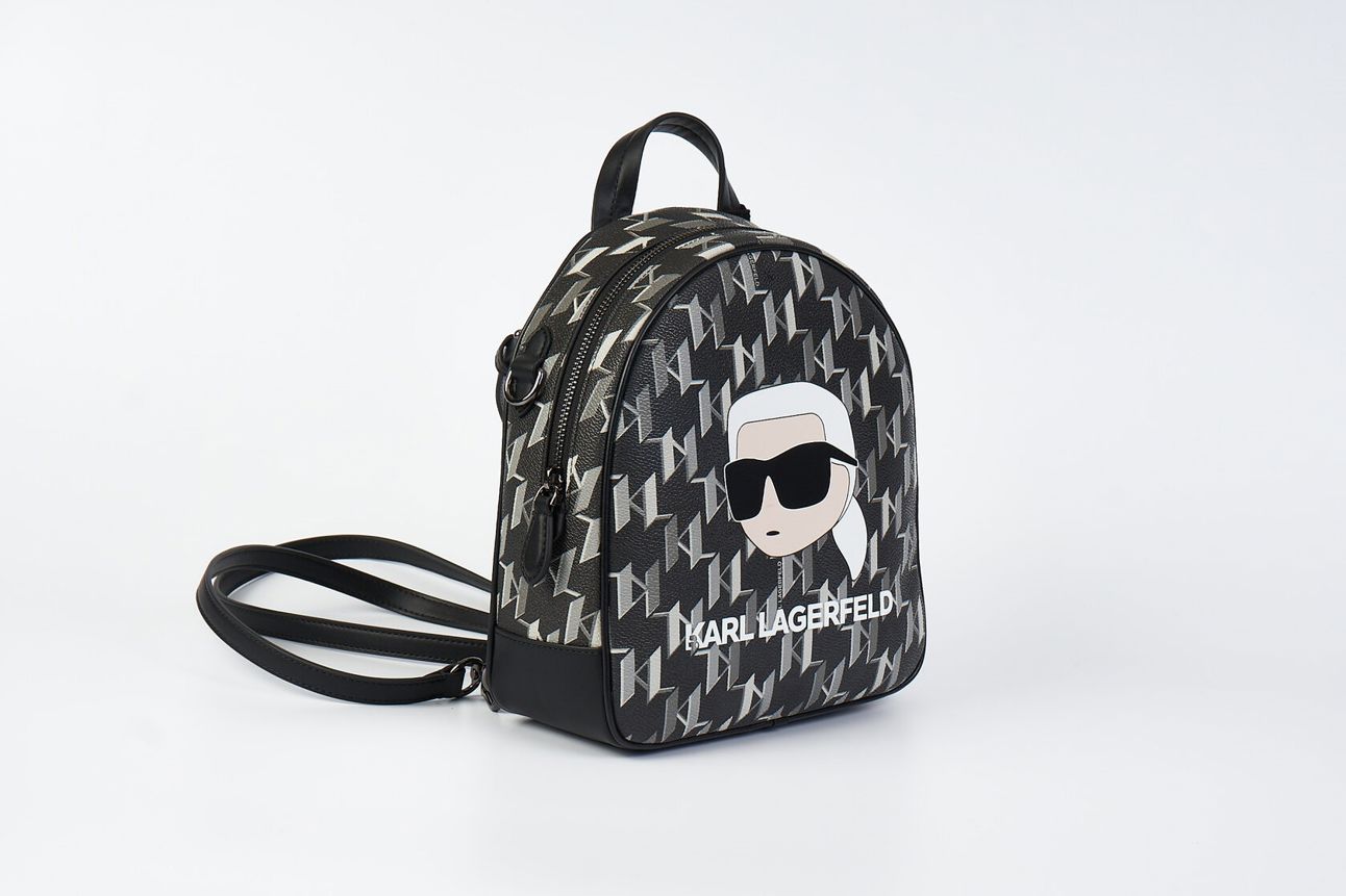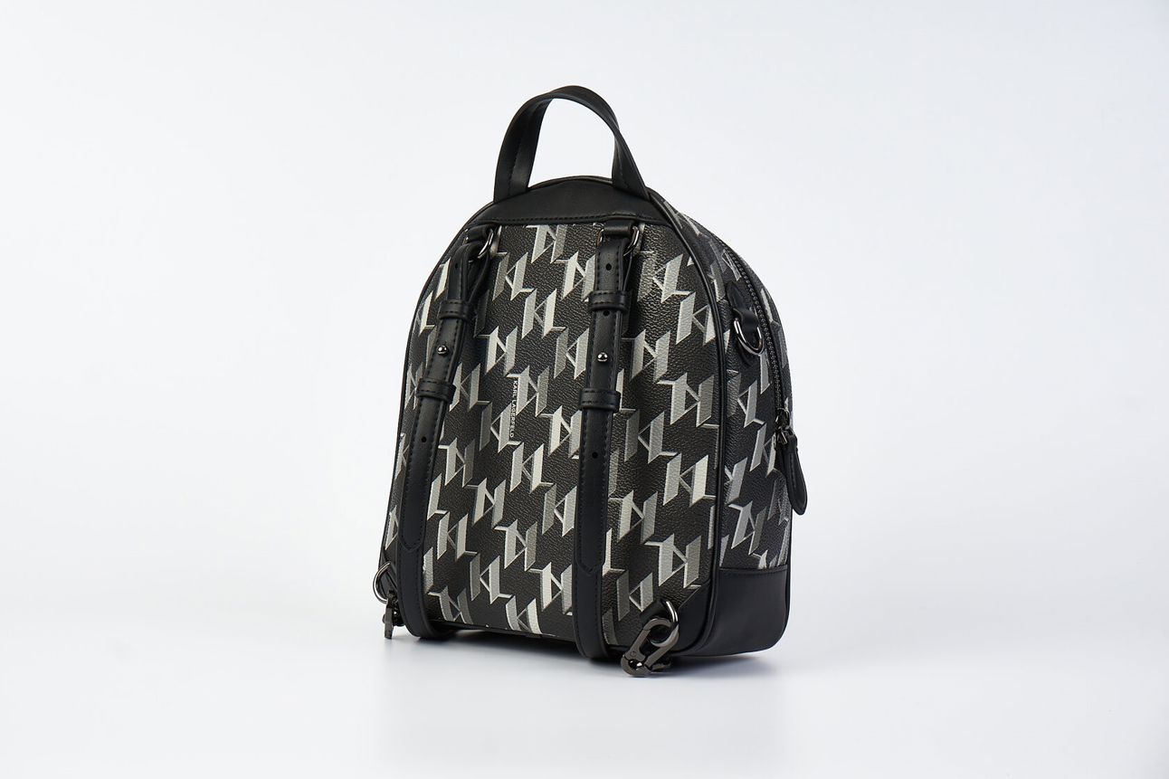 Черный рюкзак из текстурированной искусственной кожи с принтом в виде паттерна логотипа от KARL LAGERFELD.