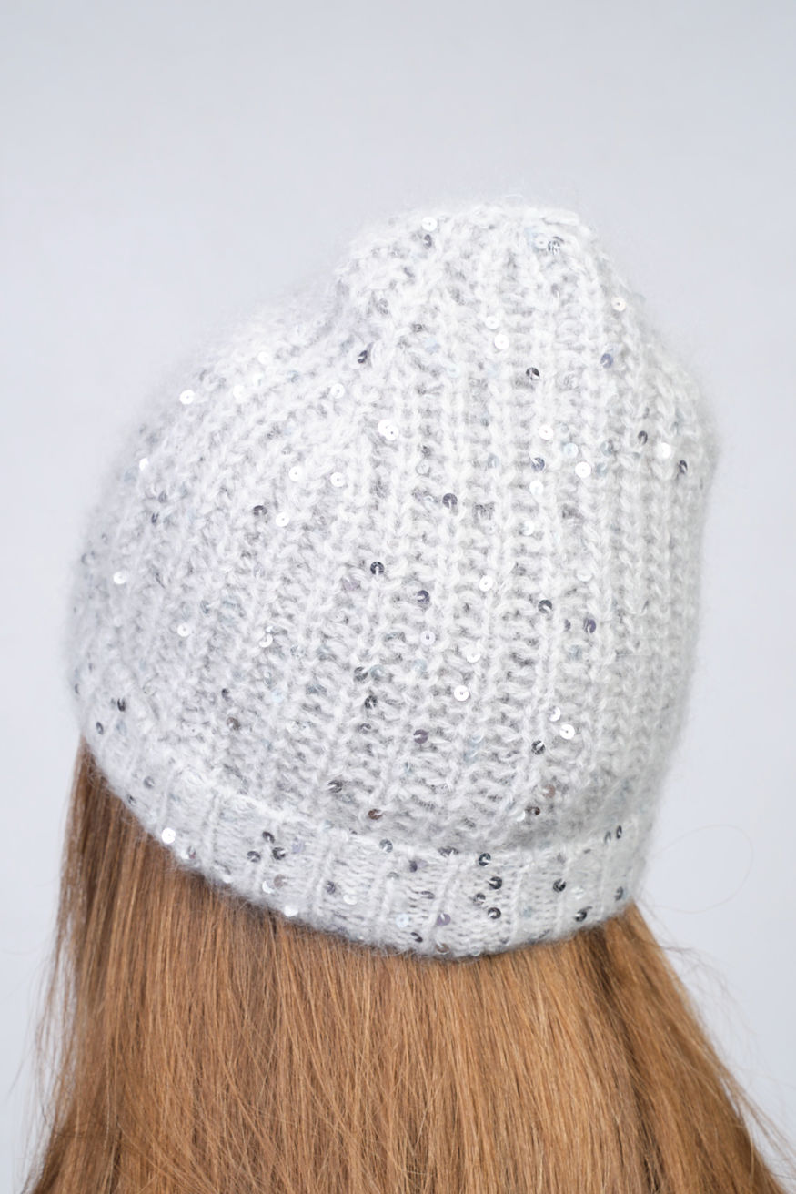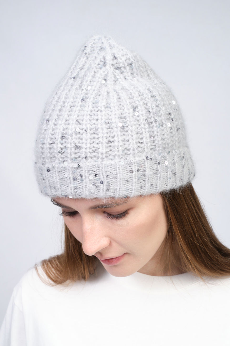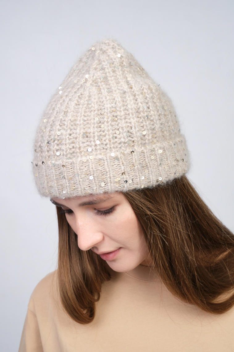 Шапка-бини от PANICALE украшена пайетками и выполнена из теплой вязаной ткани с эластичной манжетой, которая комфортно фиксирует ее на голове, не натирая кожу.