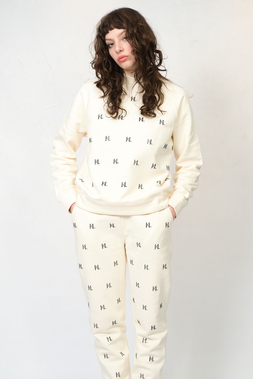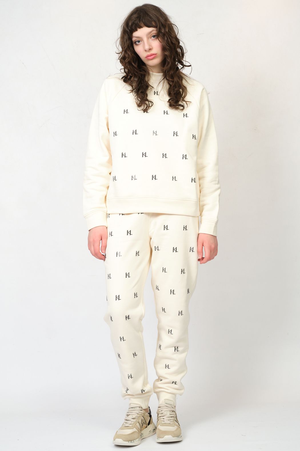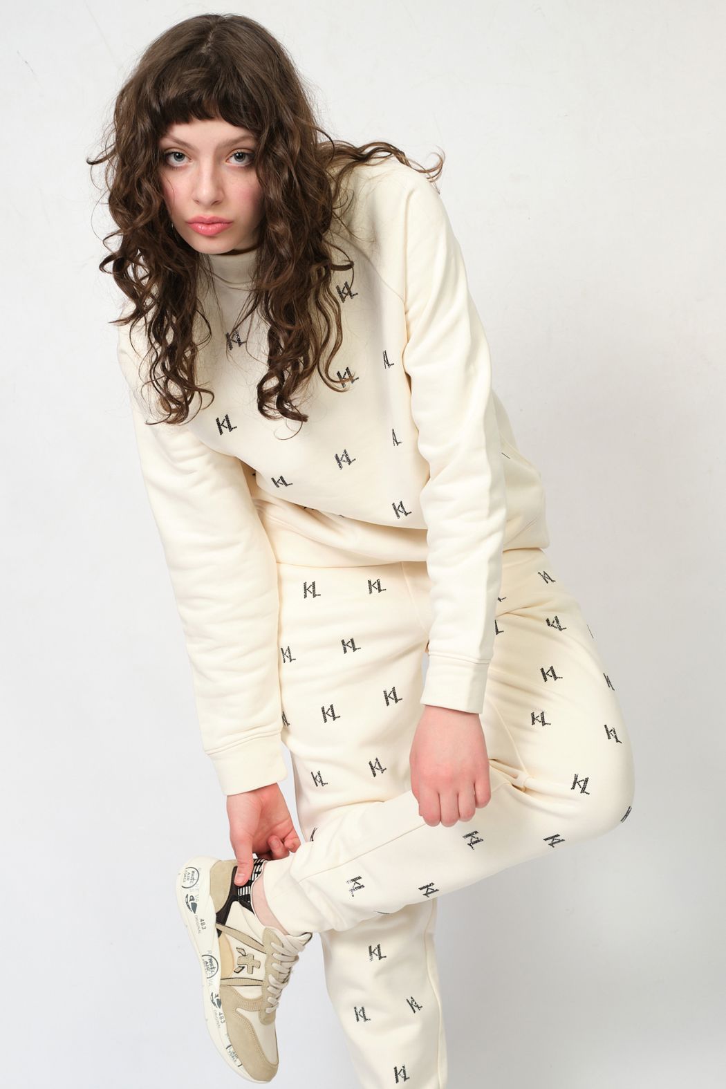 Спортивный костюм с бежевом оттенке. Задекарирован стразами отвечающие за пренадлежность бренду Karl Lagerfeld