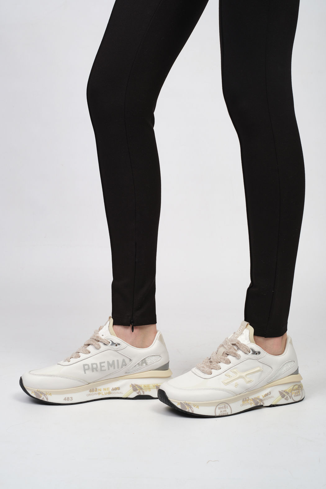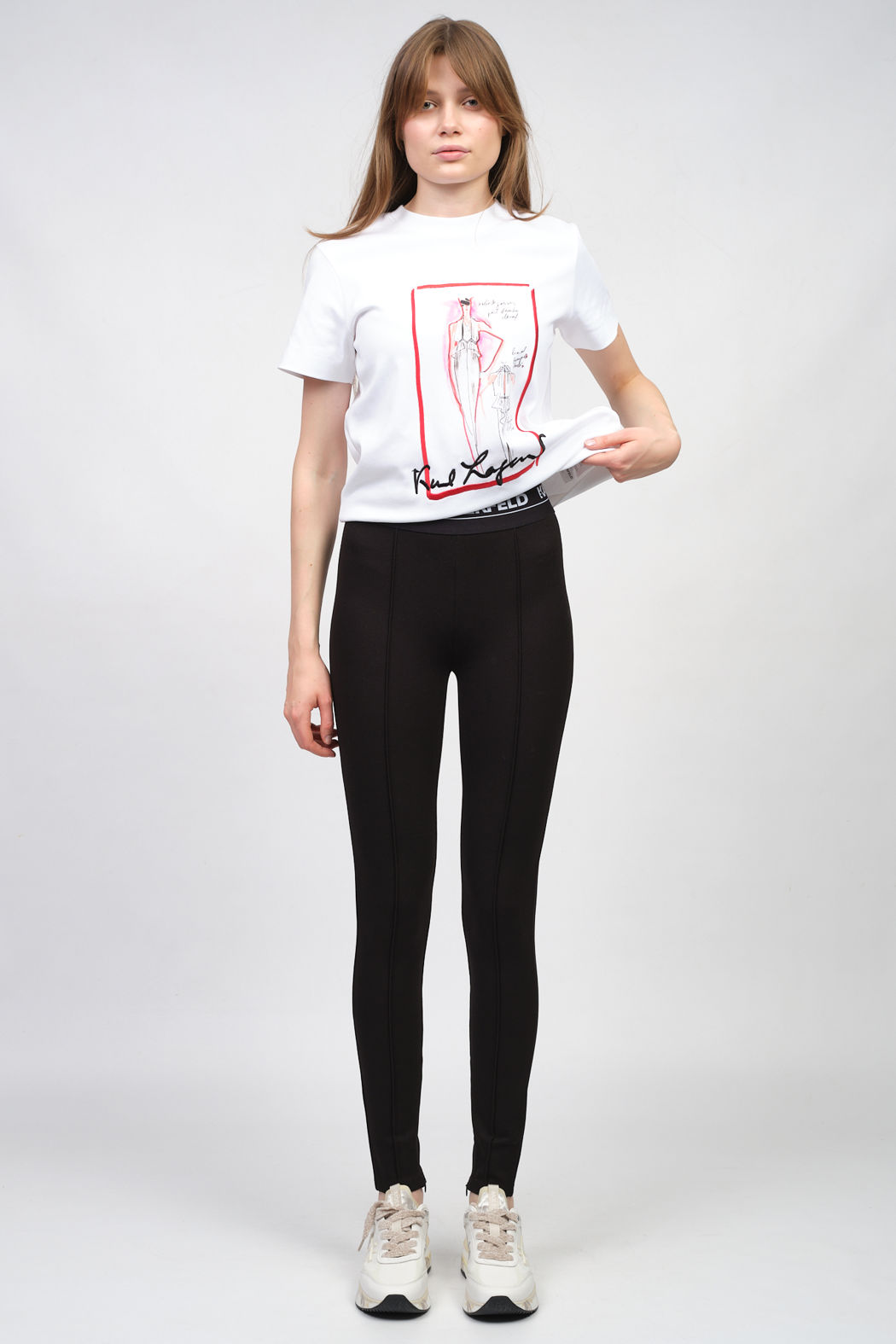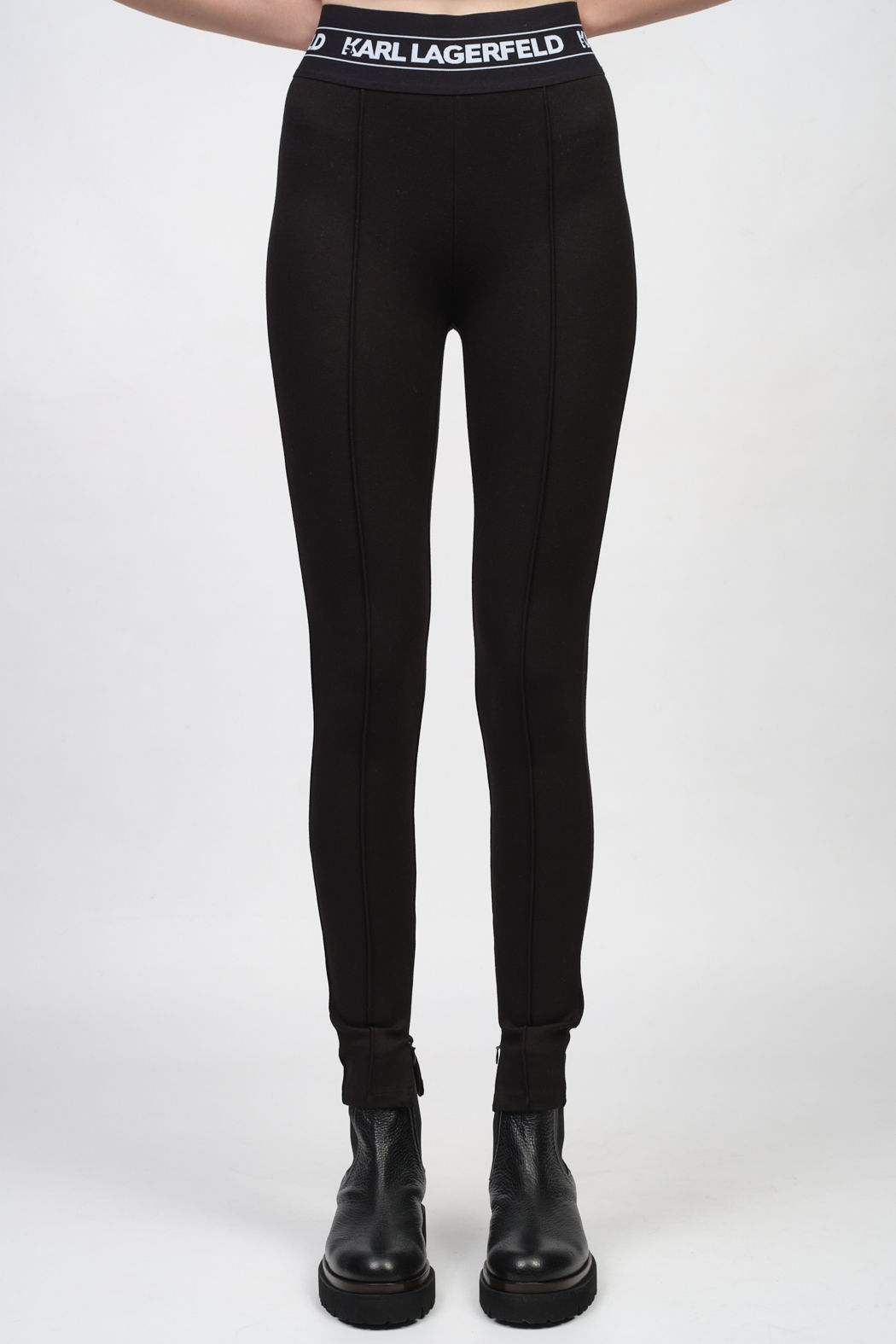 Черные леггинсы с жаккардовым принтом на поясе и разрезами на молнии от KARL LAGERFELD.