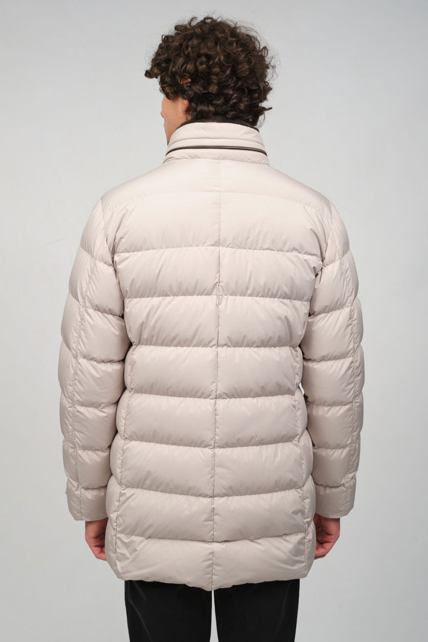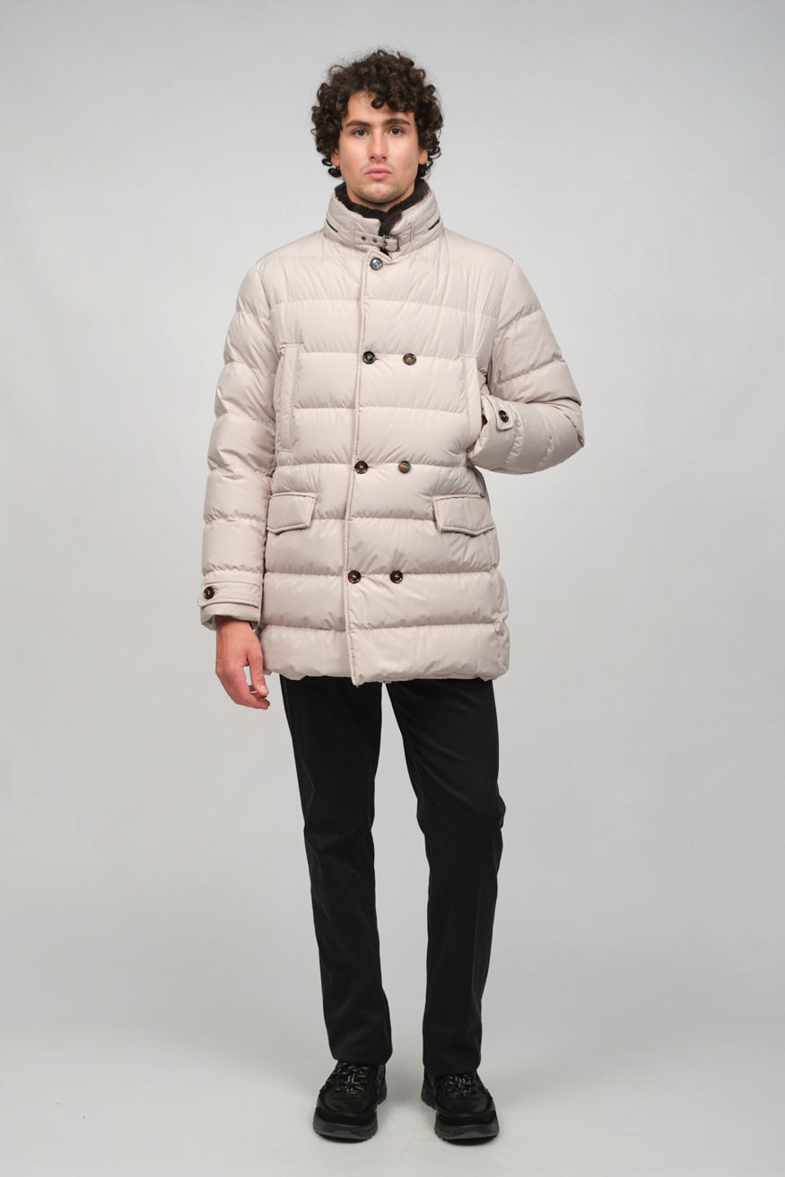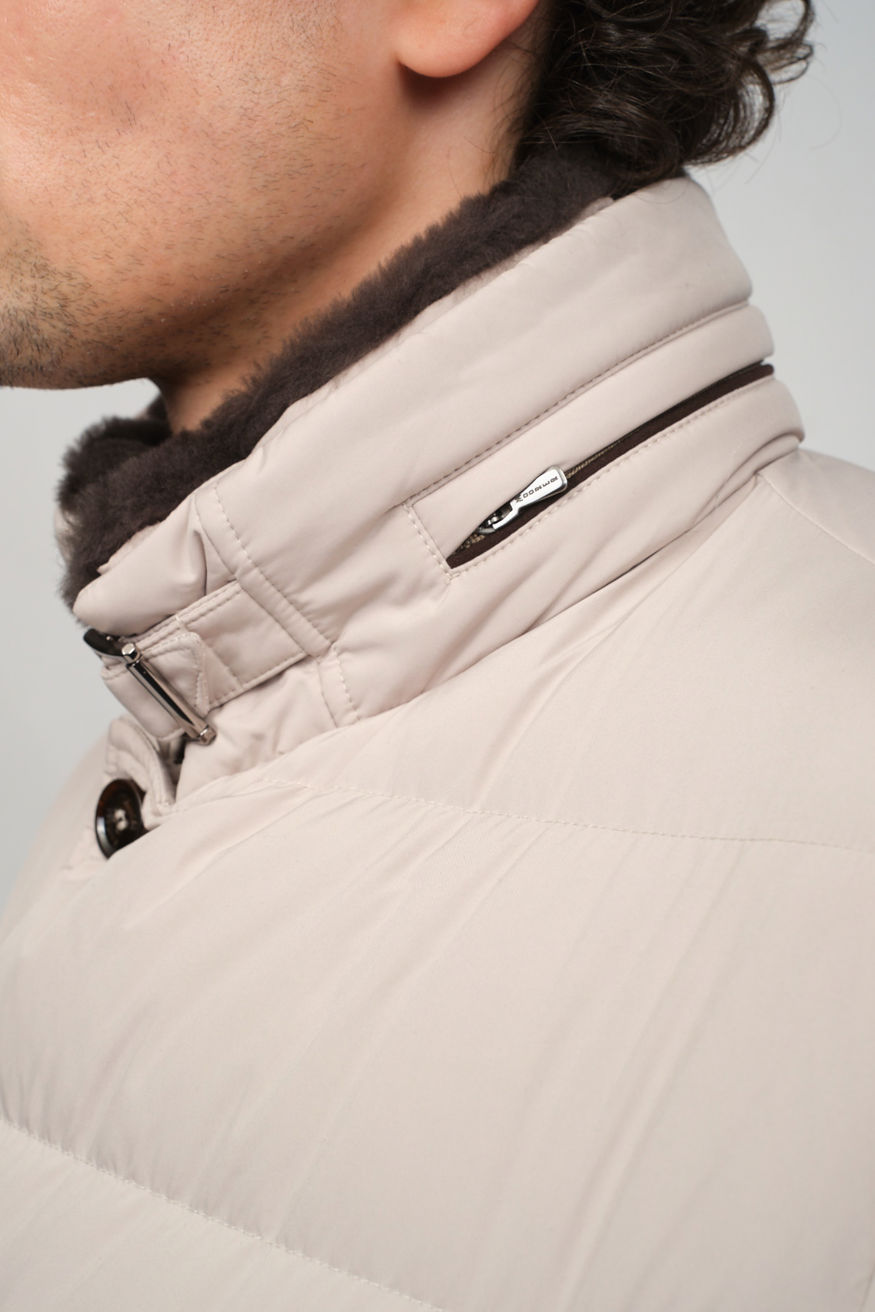 Двубортный удлиненный пуховик MOORER прямого кроя с защитой от ветра и влаги, утепленный гусиным пухом для комфорта, оснащен воротником-стойкой с отстегивающейся подкладкой из овчины. Температурный режим до -12⁰С
