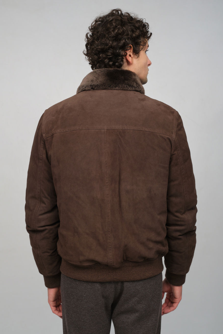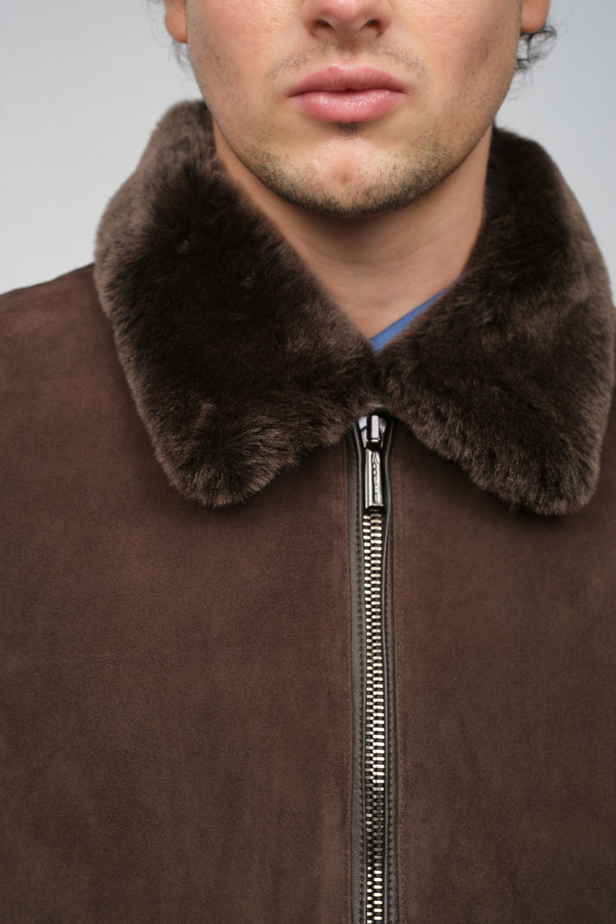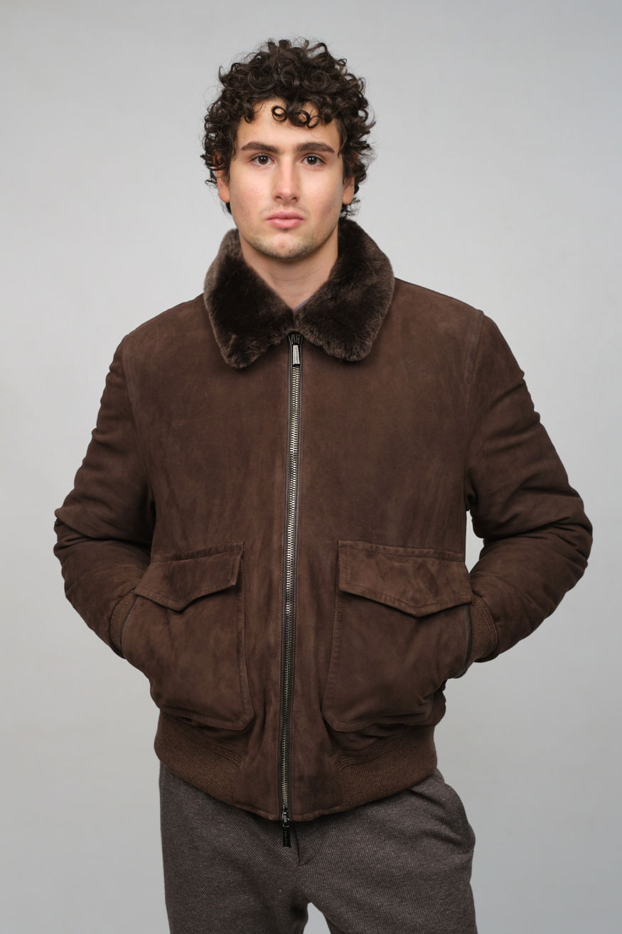 Бомбер создан, чтобы дарить исключительное тепло и оставаться вашей любимой вещью на долгие сезоны. Модель в насыщенный коричневом цвете и фактура натуральной кожи. Объемные накладные карманы добавляют образу брутальности и практичности. Широкий воротник с густым мехом надежно защищает от ветра. Верхняя часть выполнена из 100% натуральной овчины — это самый надежный и дышащий материал для суровых холодов.