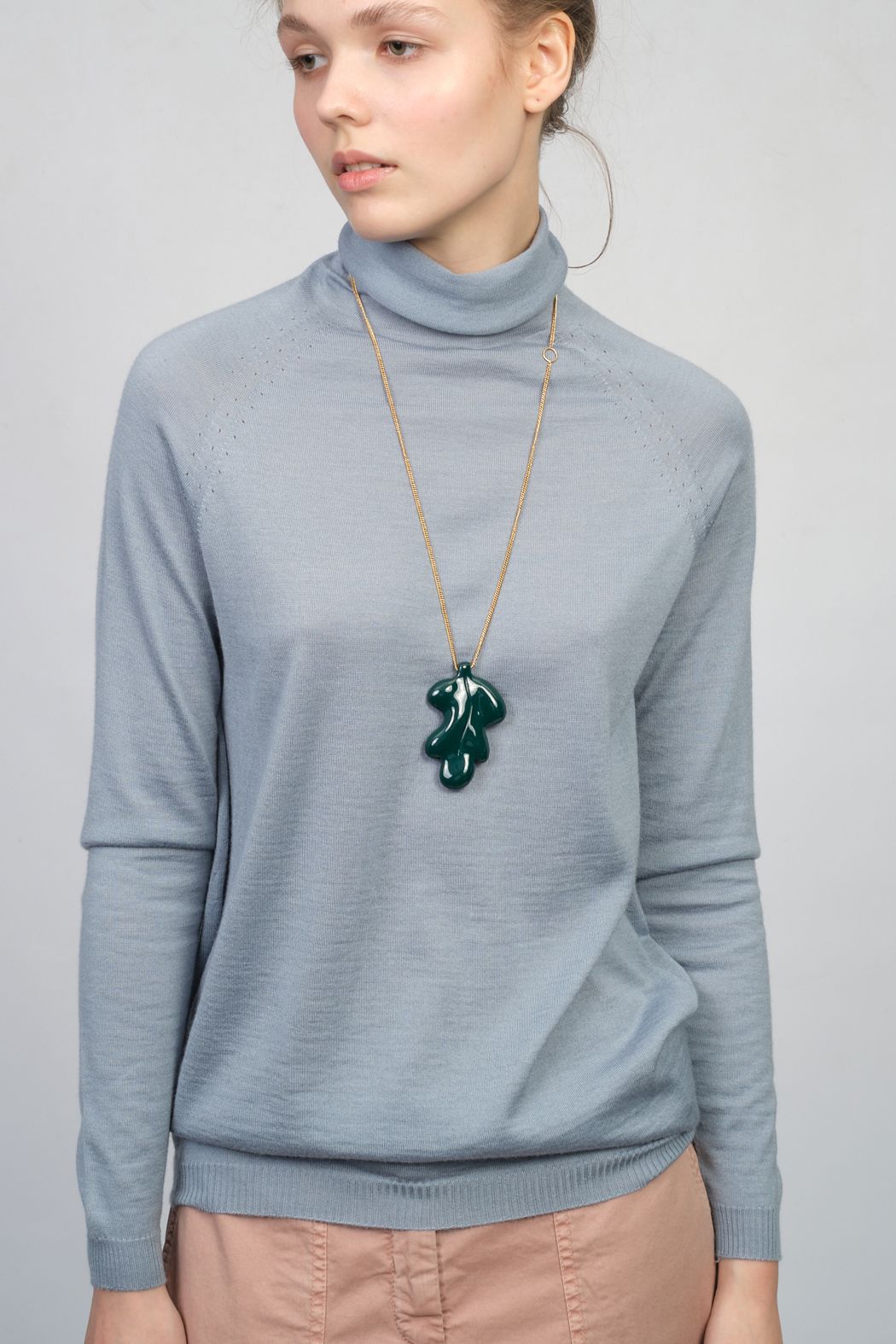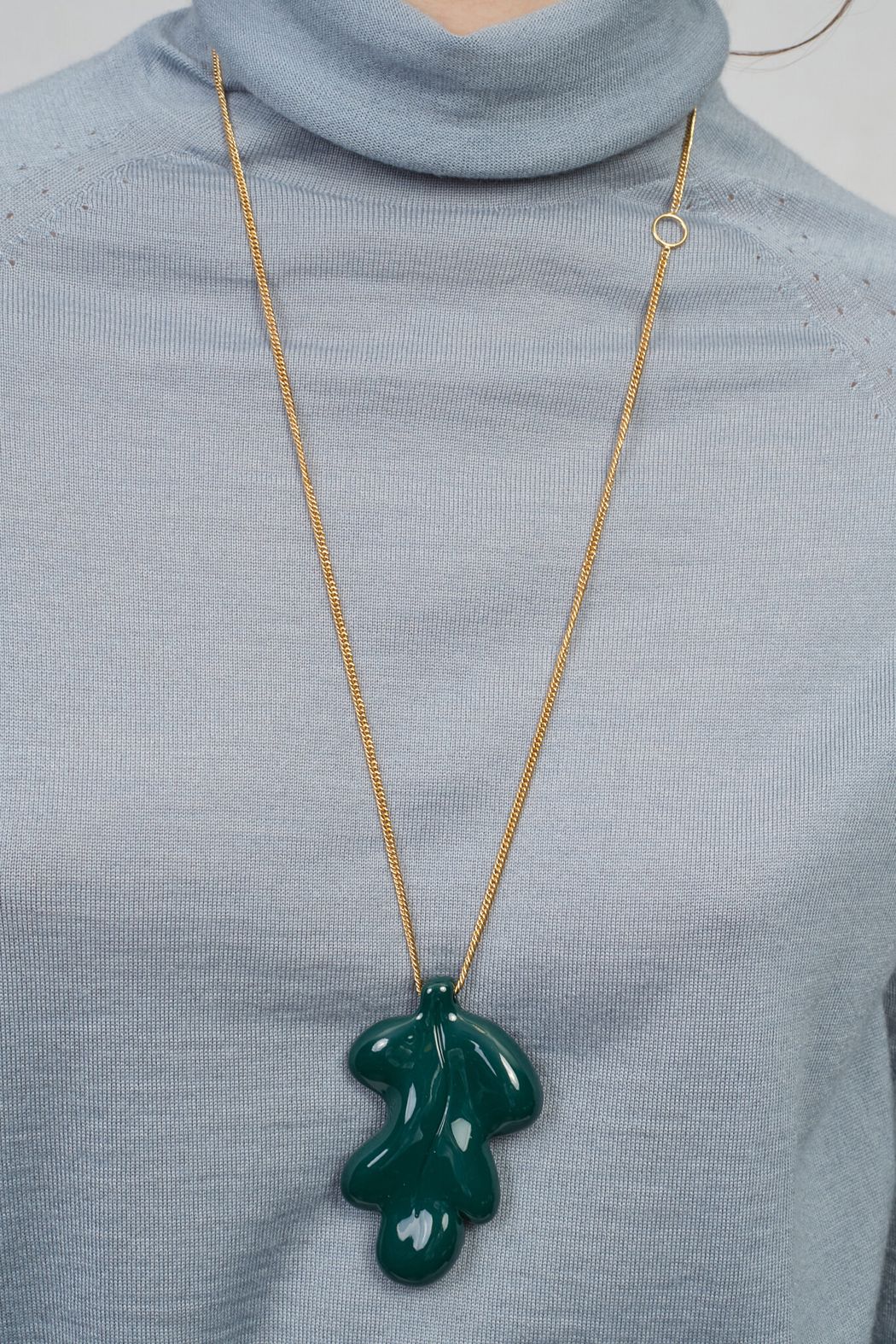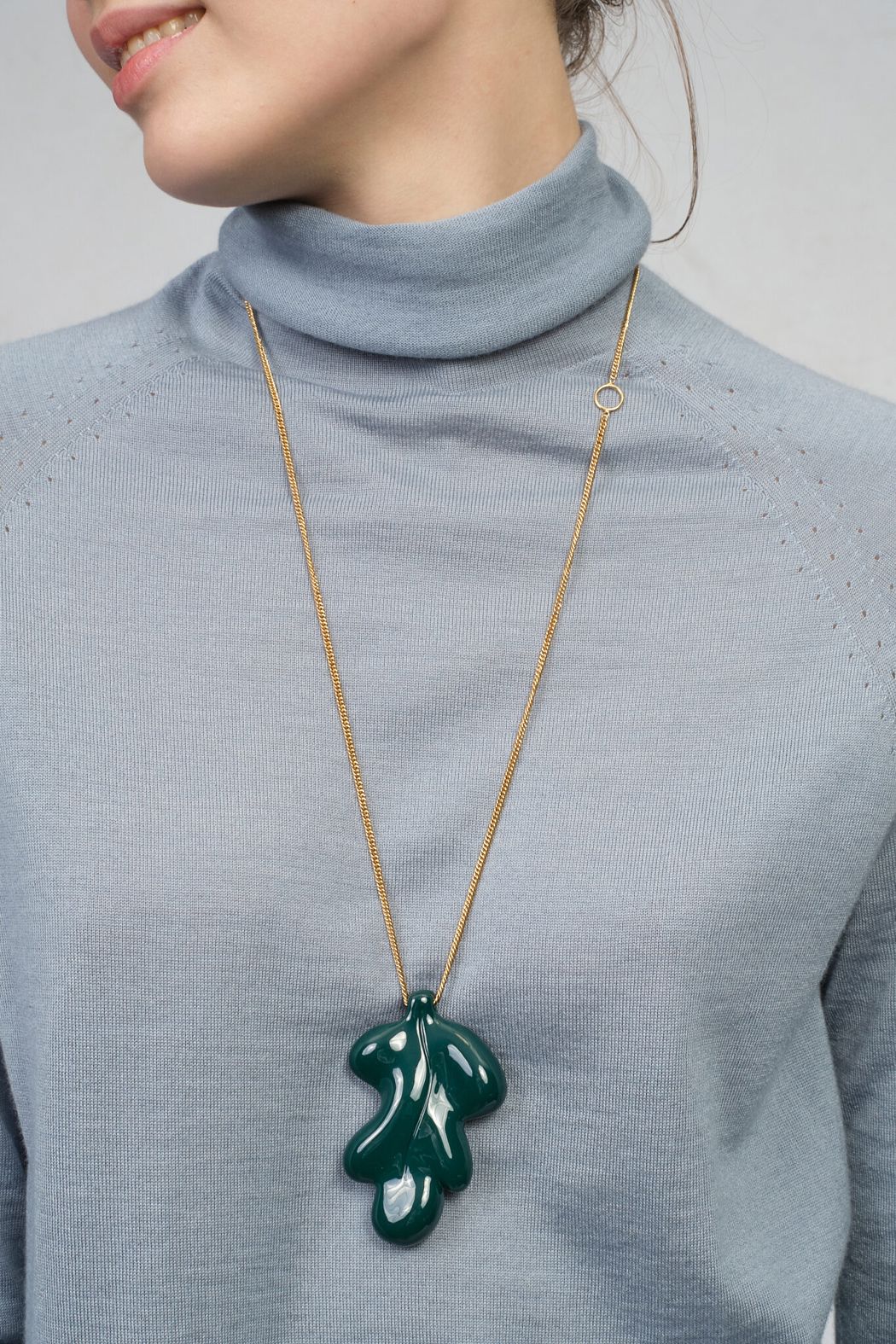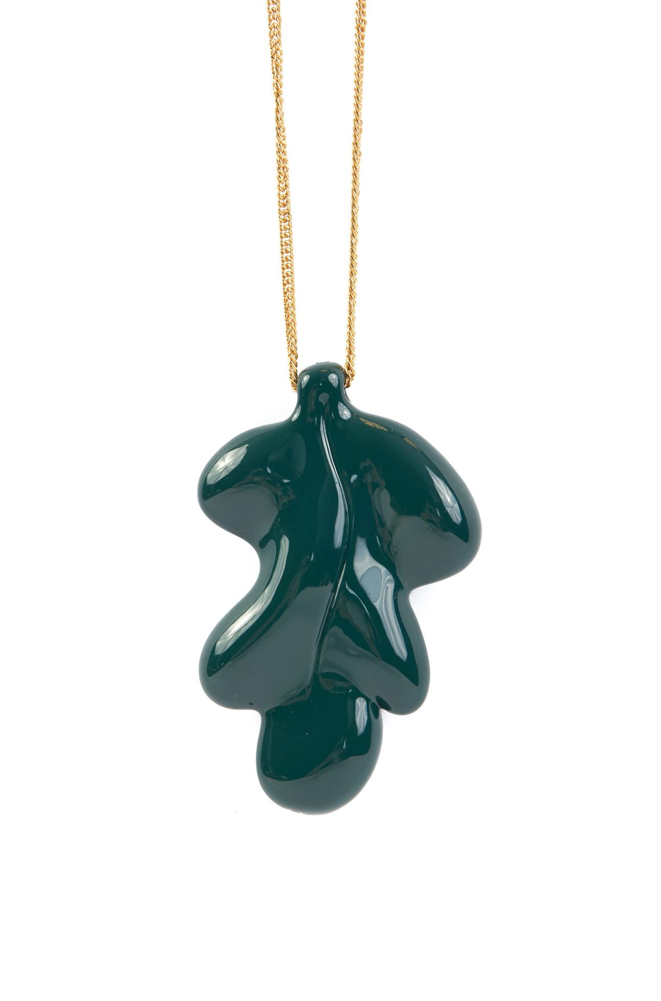 Подвесное ожерелье в виде дубового листка. Золотистая фурнитура, деталь из эмали и Т-образная застежка. Цвет: Золотистый