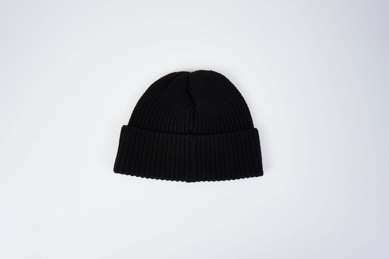 Шапка из шерсти в черном цвете от KARL LAGERFELD. Классическая форма с отворотом и фирменным логотипом