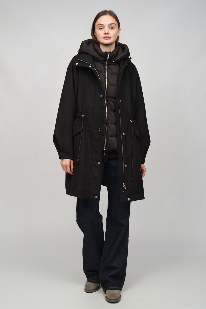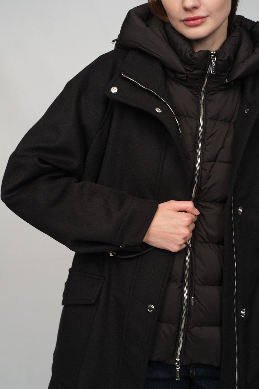Парка с тремя вариантами носки от MOORER. Многофункциональная парка комфортного кроя с утепленной съемной курткой-пуховиком, которая позволяет носить вещь тремя разными способами. Внешняя парка выполнена из двусторонней ткани из смеси чистой шерсти и ангоры с невероятно мягкой текстурой, объемный капюшон съемный, двухсторонняя молния с ветрозащитной планкой, регулируемый поясной шнур. Внутренняя куртка-пуховик: наполнитель из высококачественного гагачьего пуха со стежкой, объемный капюшон, изготовлена из сверхлегкого шелковичного нейлона с пухонепроницаемой пропиткой, скрытые карманы