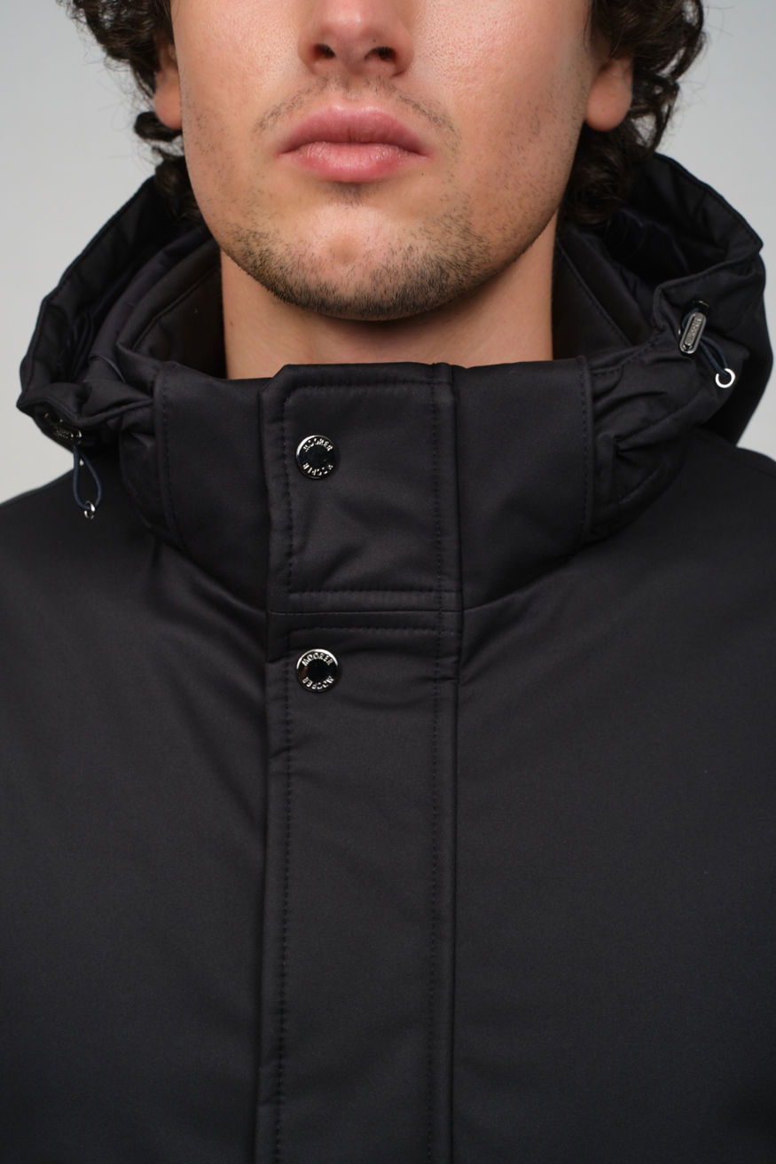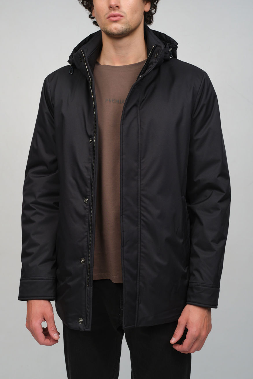 Темно-синяя куртка сочетает легкость и практичность. Ее сшили из плотного габардина и оснастили мембраной, которая надежно защищает от непогоды, позволяя коже дышать. Благодаря легкому наполнителю, в куртке комфортно гулять как в прохладную осень (+8°C), так и в морозную зиму (-12°C). Продуманный внутренний крой включает три кармана для безопасного хранения документов и телефона.