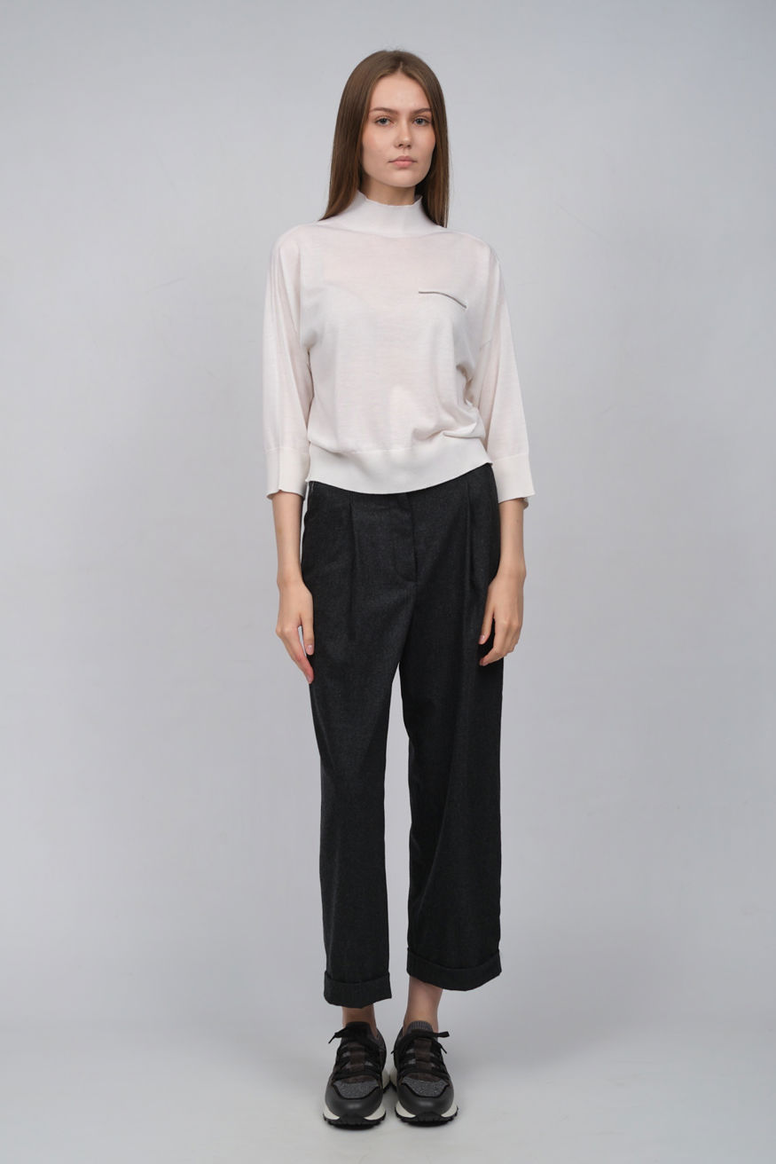 ТАБЛИЦА РАЗМЕРОВБрюки Peserico серые — эталон элегантности и комфорта. Модель из премиальной шерсти с добавлением эластана обеспечивает идеальную посадку по фигуре и сохраняет безупречный вид в течение всего дня. Благодаря натуральному составу ткань дышит и обеспечивает терморегуляцию. Классический серый цвет делает брюки универсальным решением для офиса, деловых встреч и повседневной носки.